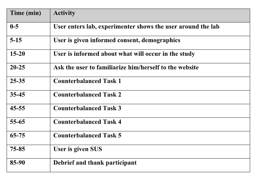 Morae was used for this evaluation to capture and record the screen, as well as record the participants’ voices and facial expressions. To communicate with the participants throughout the user testing session, Google Hangouts was connected between the participant computer and the viewing computer behind two-way glass, and notes were taken in the viewing room.